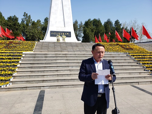 公司黨委書記徐向峰代表公司向英勇的革命烈士們敬獻了花籃,同時發表了講話。他說這八十二位烈士是為淮陰人民而戰,是為祖國而戰,他們是無數抗日先烈的一部分,我們要深切緬懷所有的為國犧牲的革命先烈!現如今,在以習近平同志為核心的黨中央的帶領下,在習近平新時代中國特色社會主義思想引領下,中國特色社會主義進入了新時代,作為新時代的共產黨員,我們要繼續傳承先烈遺志,宏揚他們不畏艱難、不怕犧牲、英勇頑強的革命精神,服從大局、心中無我的擔當精神。徐書記號召大家要加強自我修煉,全面提高自我,事事有擔當、能擔當、會擔當,盡顯先鋒模范的帶頭作用,帶領一代一代水建人,為淮陰水建更加美好的明天而努力奮斗。